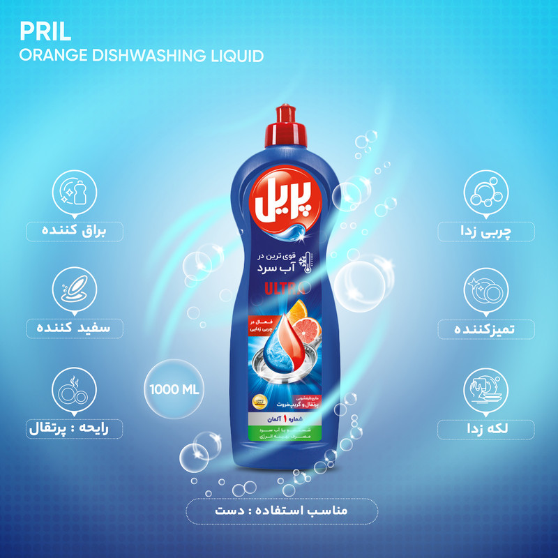 با مایع ظرفشویی پریل مدل پرتقال، شستشوی ظروف را به تجربهای دلچسب و مؤثر تبدیل کنید. با فرمولاسیون قدرتمند و رایحهی دلانگیز پرتقال، این مایع 1000 گرمی حتی سختترین چربیها را به راحتی از بین میبرد و ظروفی درخشنده و براق به شما هدیه میدهد. انتخابی ایدهآل برای آشپزخانهای همیشه تمیز!